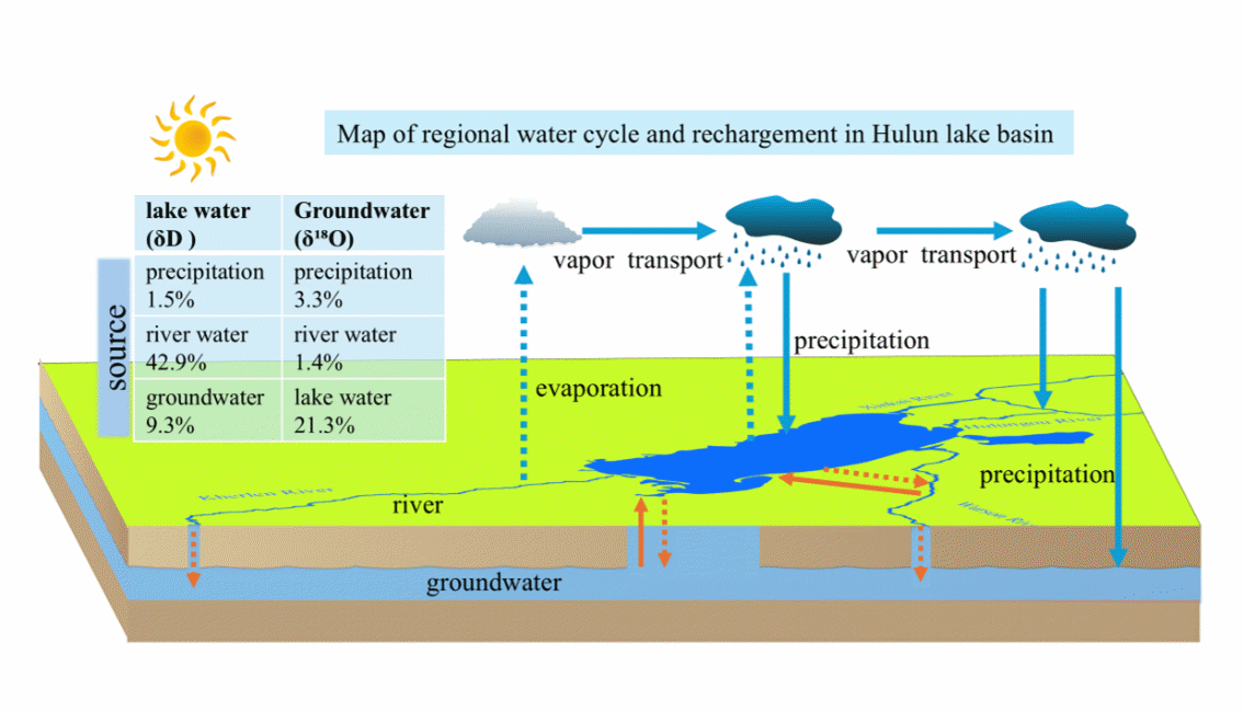 图1. 呼伦湖丰水期水源补给机制